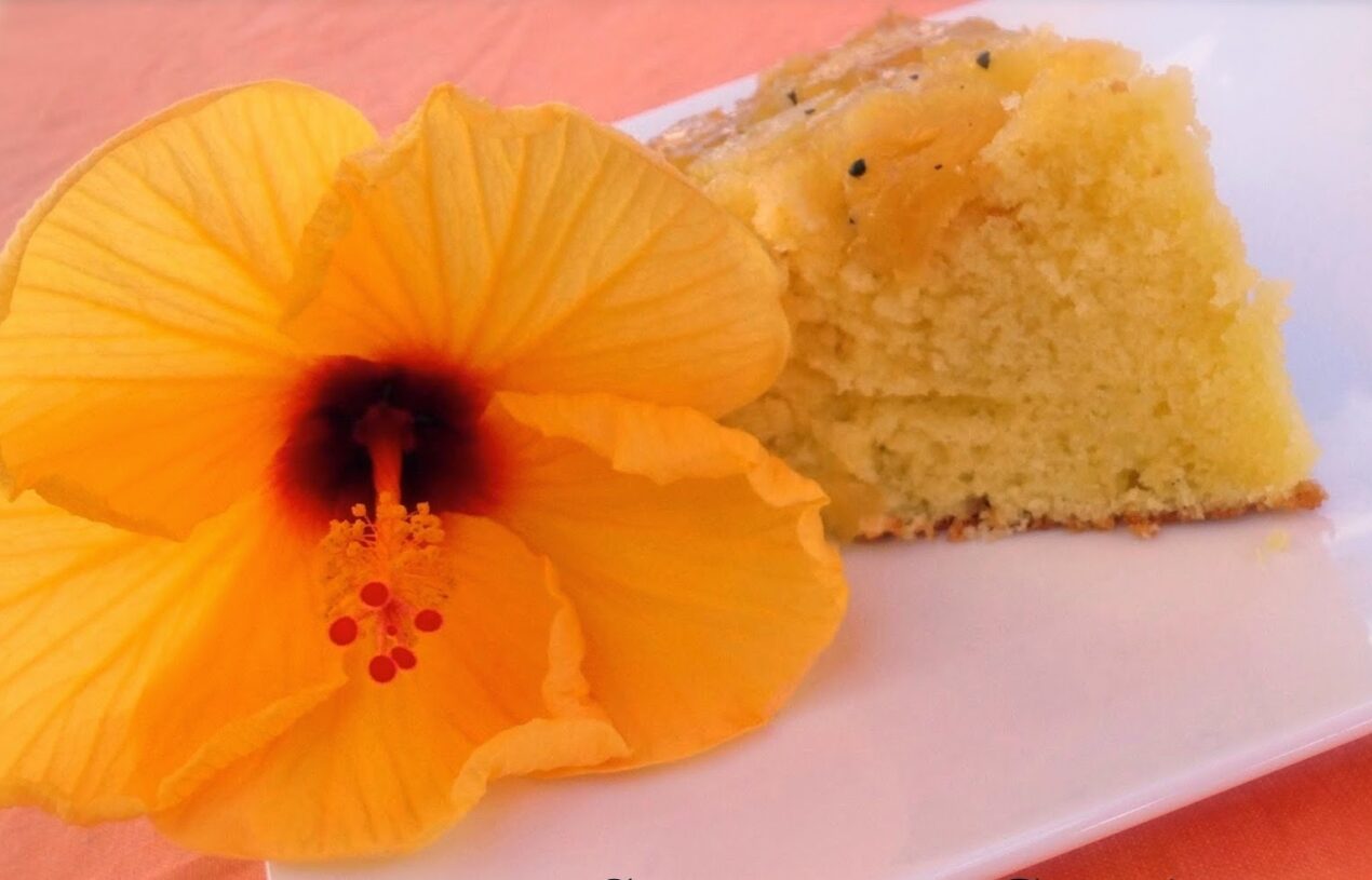 Ce gâteau est juste « dépaysant », la recette de base vient du blog d’ une amie, qui a la joie de pouvoir cuisiner avec des ananas ramassés quasiment dans son jardin.