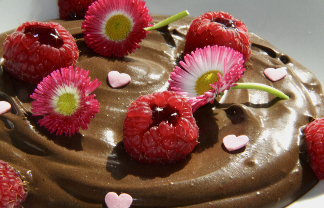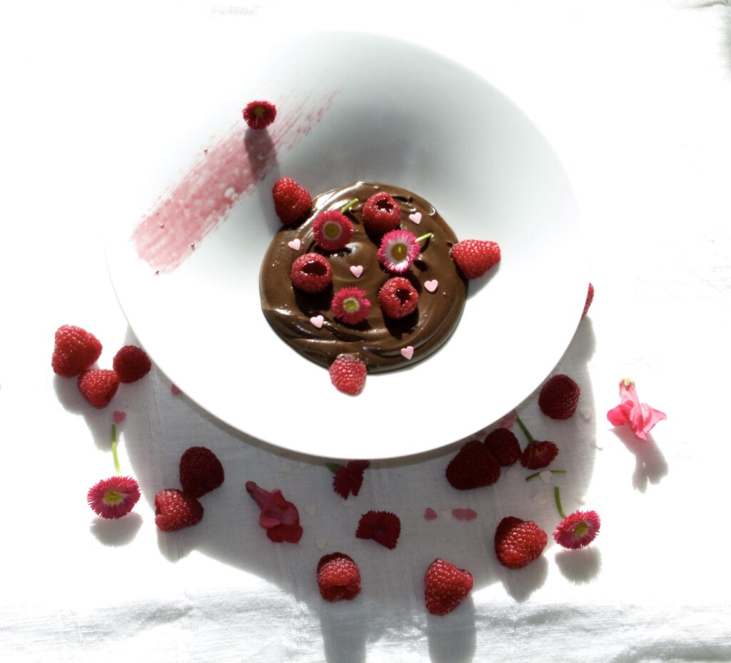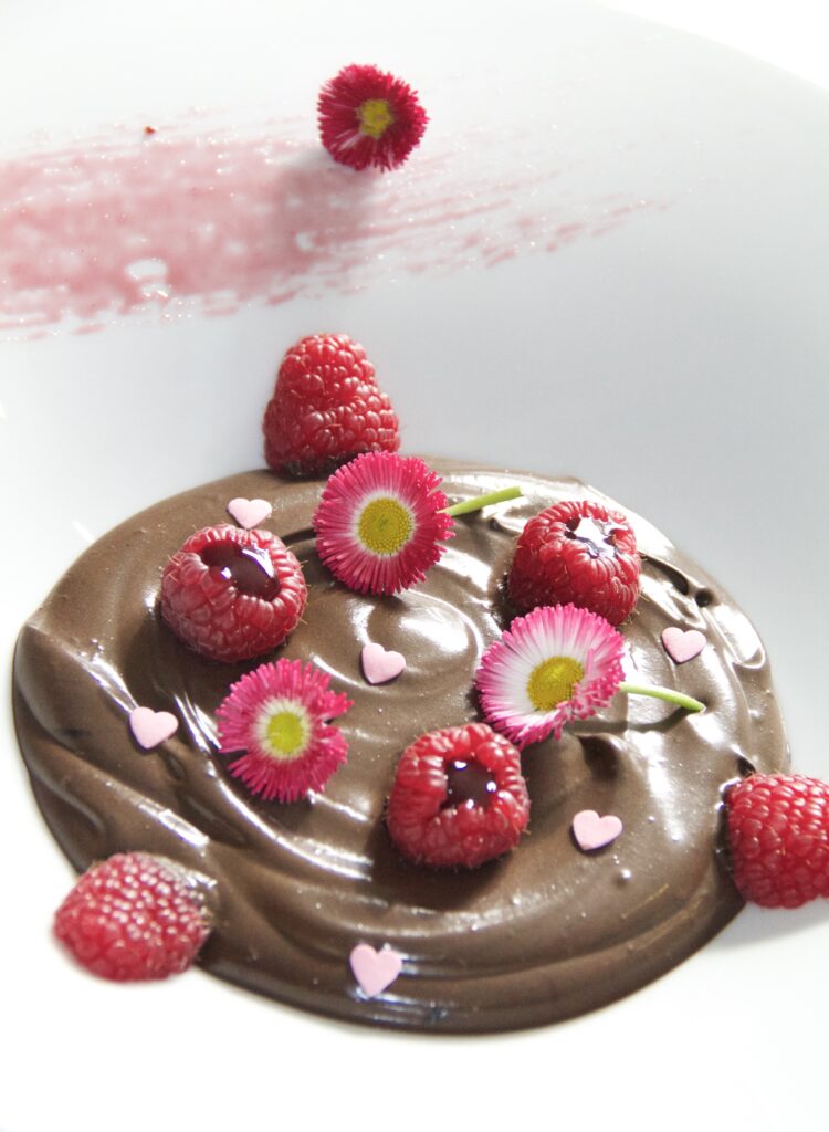 Mousse au chocolat et framboises fraîches